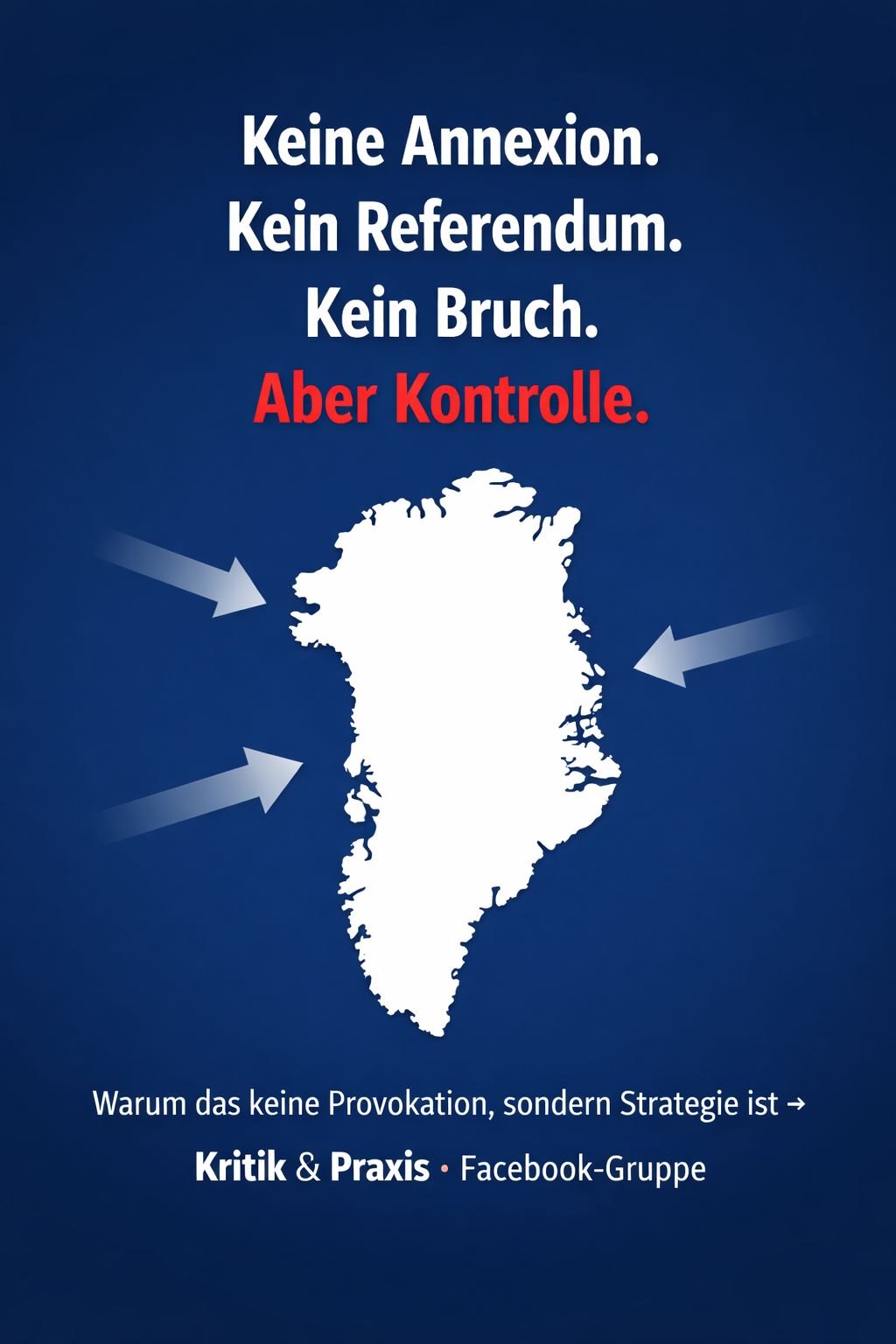 Die Abfolge ist absehbar: Sicherheitsargumente schaffen Dringlichkeit, NATO-Rahmung liefert Legitimität, Investitionen und Infrastrukturangebote erzeugen Abhängigkeit, Autonomie-Rhetorik wahrt die Fassade. Am Ende steht keine formelle Übernahme, sondern faktische Kontrolle.