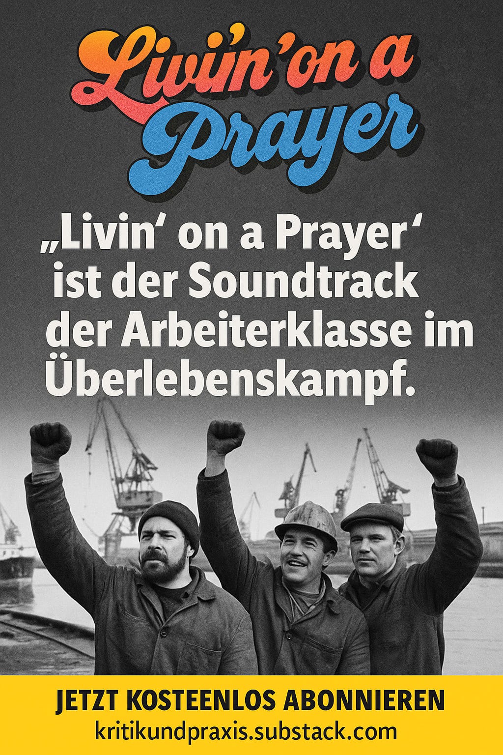 Gerade dadurch ist „Livin’ on a Prayer“ mehr als Rockklischee: Es ist ein Lied über die Ambivalenz der Arbeiterkultur in der Spätmoderne. Durchhalten, kämpfen, hoffen – aber ohne Garantie, dass der Traum von morgen eingelöst wird.